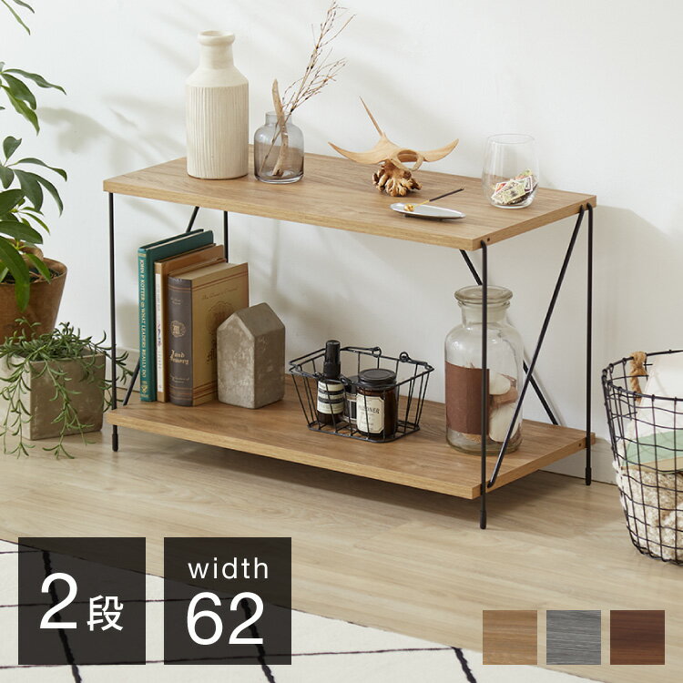 ■ワイヤーラック 2段 幅62cm 木目調 スチール 組み立て簡単 工具不要 おしゃれ 北欧 収納 スチールラック ワイヤーラック スチールシェルフ 子供部屋 洗面所 ディスプレイラック 隙間収納 すきま収納(代引不可)【送料無料】