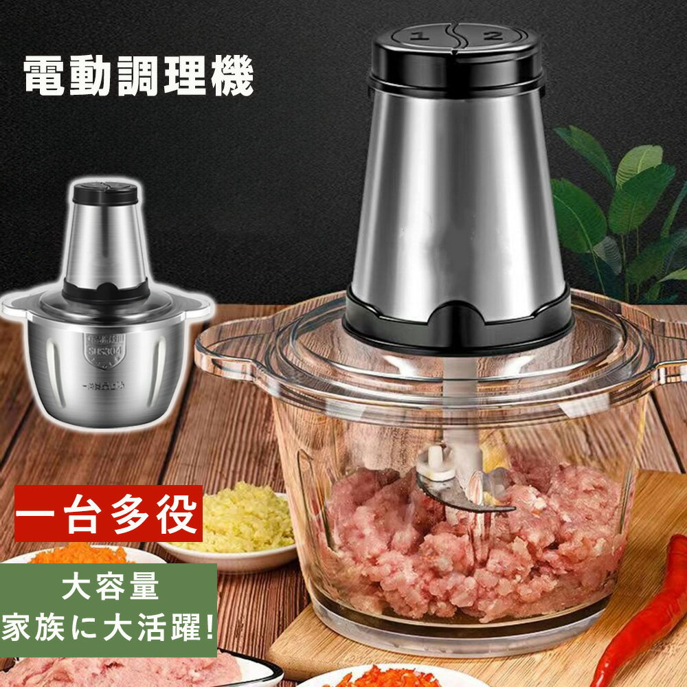 ■超目玉価格!! フードプロセッサー 電動 フード チョッパー 肉チョッパー 野菜チョッピング ミキサー 大容量 2L 3L ステンレス鋼刃 みじん切り器 ステンレス鋼 ガラス 電動 挽肉 刻む みじん切り 洗いやすい 操作簡単 軽量 家庭用 引越し祝い プレゼント ギフト 敬老の日