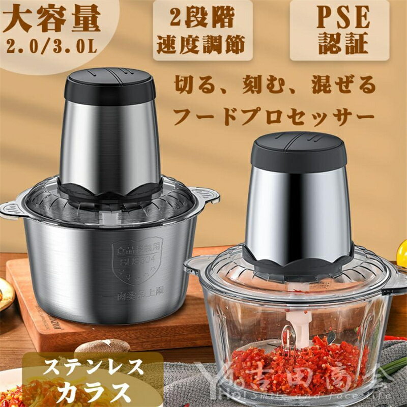 ■2025年新バージョン】フード?プロセッサー 2L/3L大容量 フードチョッパー food chopper 超強力モーター 304ステンレス 4枚刃フードチョッパー フードミキサー 2段階スピード 時短 調理家電 簡単操作 水洗い可能 一台多役 離乳食/肉/野菜/果物に適用