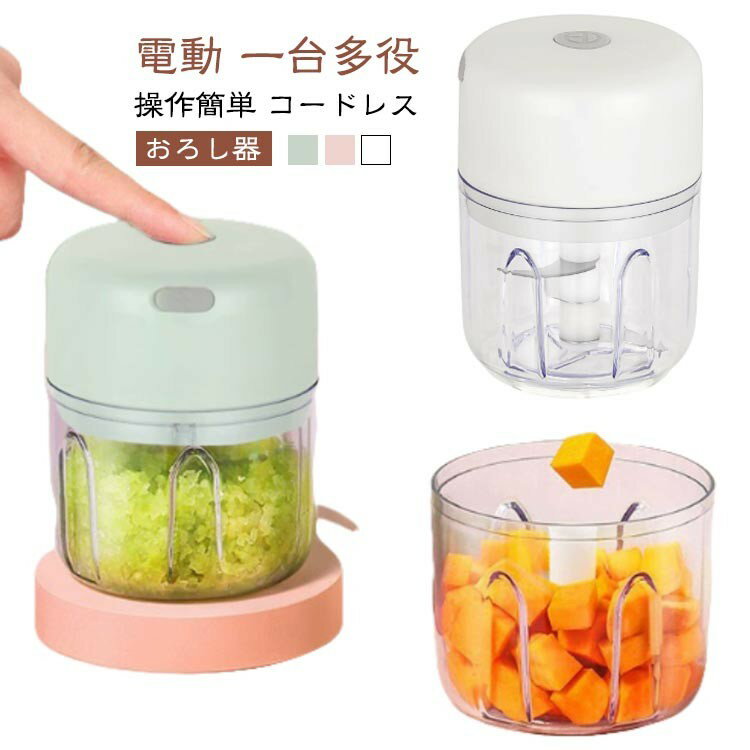 電動 一台多役 操作簡単 コードレスおろし器コンパクトでパワフルなフードプロセッサー。1回の充電で最大60回使用可能。(250ML/三刃タイプ)下ごしらえも手早くできて時短調理に大活躍します。パワフルな使用感はそのままに、コードの煩わしさなくどこでも使える自由さを手に入れました。毎日の料理を気軽に、楽しくさせてくれるお手伝いフードプロセッサーです。適した用途: みじん切りのニンニク、コショウ、さま...
