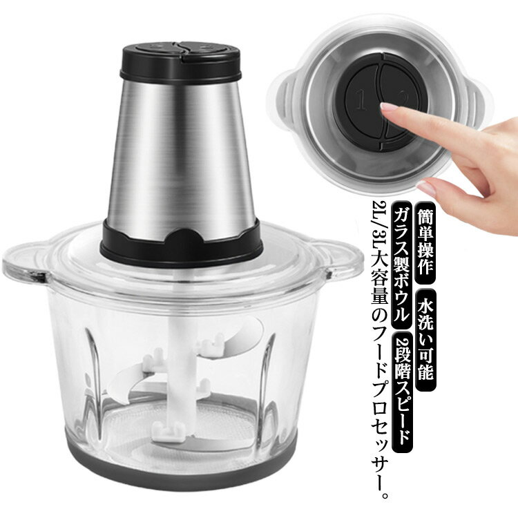 ■フードプロセッサー 多機能 2L 大容量 みじん切り 大根おろし チョッパー 3L 時短家電 離乳食 2段階スピード 玉ねぎ ひき肉 ガラス 一台多役 電動 静音 安定 簡単操作 水洗い可能 強力