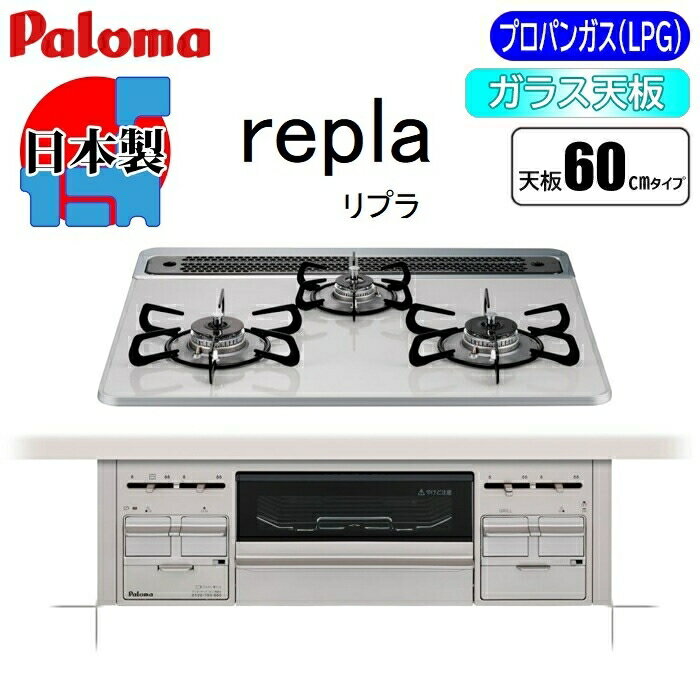 ■ビルトインコンロ repla リプラ 60cm ティアラシルバー プロパン用【日本製】台数限定!!メーカー価格25 850円相当オプション品セット価格!! パロマ PD-509WS-60CV-LP ビルトインガスコンロ プロパンガス ラクックグラン 炊飯専用鍋 自動炊飯機能 シンプル操作