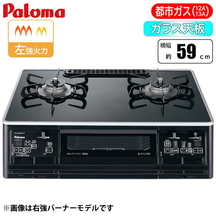■パロマ テーブルコンロ 「Sシリーズ」59cm(クリアパールブラック/左強火力/都市ガス(12A/13A)用) PA-A65WCK-L-13A ガスコンロ 調理器具 キッチン用品 家電 シンプルデザイン 省スペース 火力調節 使いやすい シンプル操作 お手入れ簡単 キッチンアイテム 安全設計 質の良い