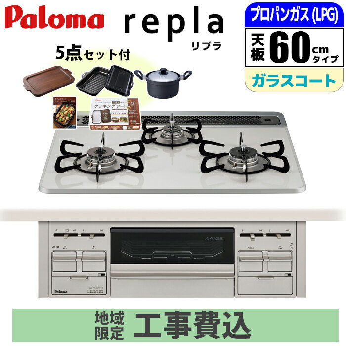 ■ビルトインコンロ repla リプラ 60cm ティアラシルバー プロパン用【日本製】台数限定!!メーカー価格25 850円相当オプション品セット価格!!【標準工事費込み】 パロマ PD-509WS-60CV-LP-KOJISET ビルトインガスコンロ プロパンガス ラクックグラン 炊飯専用鍋 自動炊飯機能