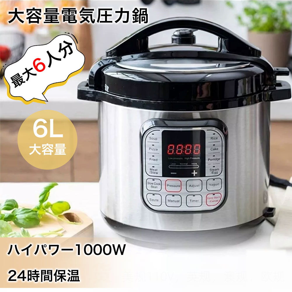 ■電気圧力鍋 簡単操作 低温調理 電気圧力鍋 6L 大容量 自動調理 電気圧力鍋 圧力鍋 鍋 炊飯器 炊飯 米 白米 電気代 一台15役 予約タイマー 手軽 時短 保温 使いやすい 蒸し料理 低温調理 スロークック 焼き調理 7つ保護機能 調理家電 キッチン家電