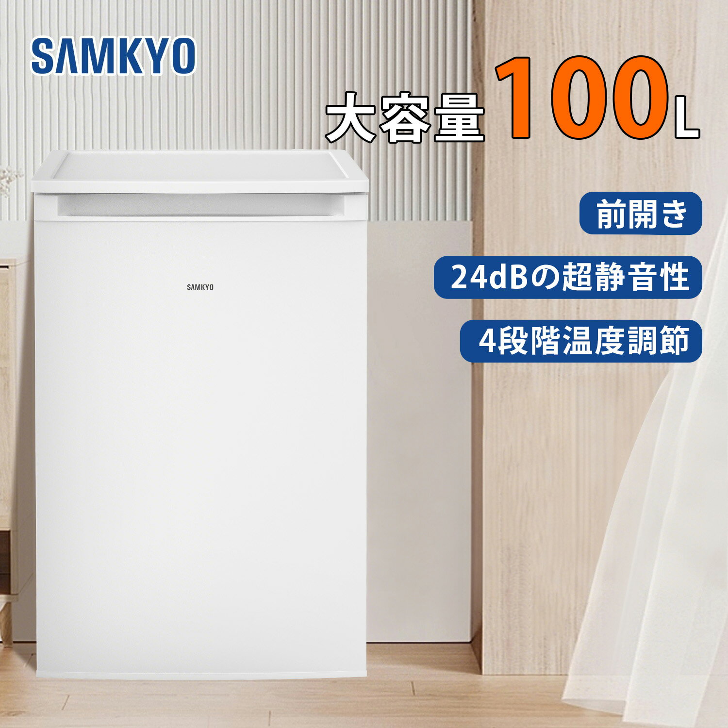 ■【12/3 SS応援★最安値⇒25,990円】SAMKYO 冷凍庫 100L 家庭用 コンパクト 前開き 耐熱天板 静音 急速冷凍 省エネ 氷 食材 食品 ZU100