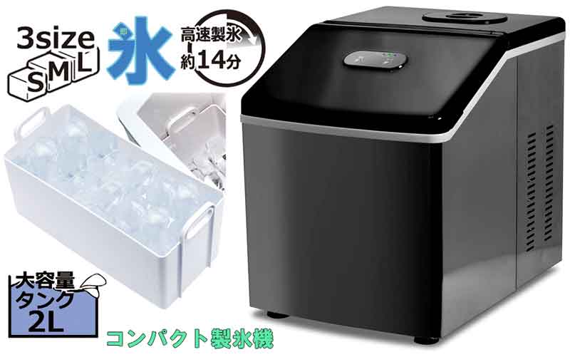 ■綺麗な氷を瞬時にサイズを選んで作れる水を入れるだけの簡単操作大容量タンク コンパクト自動製氷機僅か14分で水が氷りに ブロック型クリアアイスメーカー ブラック居酒屋のかき氷 、部活、スポーツジムのアイシングなどの緊急用に