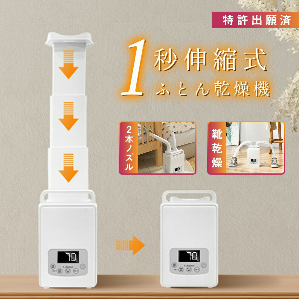■【革新的な1秒伸縮ホース】布団乾燥機 ダニ退治 ふとん乾燥機 靴乾燥 衣類乾燥 布団あたため 1秒伸縮ホース 温風機能 部屋干し 速乾 速暖 軽量 持ち運び/収納便利 湿気対策 梅雨対策 省エネ 操作簡単 ホワイト
