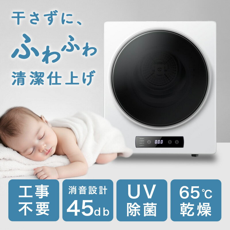 ■衣類乾燥機 4.5kg 小型 コンパクト 省エネ 静音 UV除菌 予約機能付き タイマー付き シワ取り 部屋干し 梅雨対策 カビ対策 花粉対策 除湿 脱臭 壁掛け 工事不要 タッチパネル 省スペース 簡単操作 一人暮らし PSE認証済み 家庭用 旅館用 新生活 【選べる特典付】