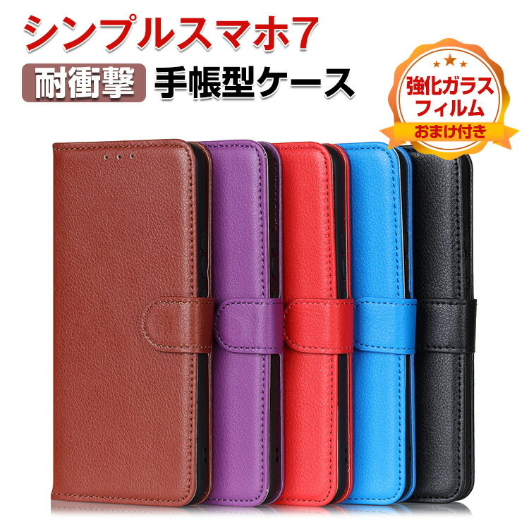 ■SHARP Simple Sumaho7 シャープ シンプルスマホ7 ケース 手帳型 財布型 耐衝撃 カバー TPU&PUレザー 質感よく おすすめ おしゃれ 汚れ防止 スタンド機能 実用 カード収納 人気 スマホ 手帳型カバー CASE 強化ガラスフィルム おまけ付き