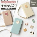 ■全機種対応 スマホケース 手帳型 【 simple アニマル ステッチ ワッペン 】 スマホショルダー対応 くすみカラー シンプル 犬 猫 うさぎ くま パンダ 携帯ケース カバー レディース メンズ iphone16 ケース iphone16e aquos sense9 iphone SE3 iPhone15 oppo MMLM