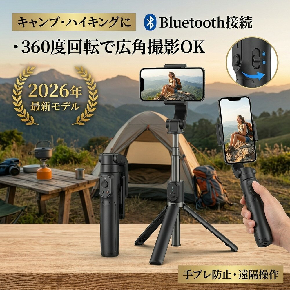 ■【2026最新設定不要で即撮影】 ジンバル スマホ セルカ棒 自撮り棒 アプリ不要 簡単操作 手ぶれ補正 スタビライザー 三脚 Bluetooth リモコン iphone Android 対応 折り畳み 360度回転 初心者 動画撮影 Vlog 軽量 コンパクト 携帯便利 撮影