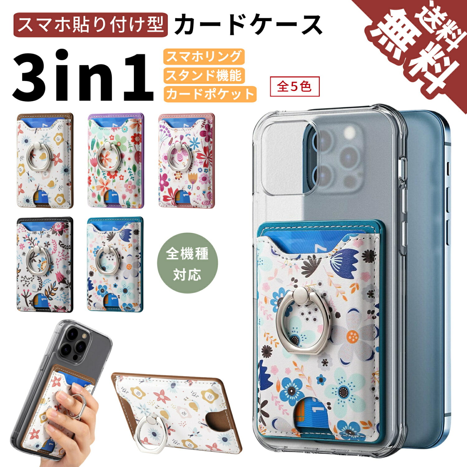 ■貼り付け 花柄 リング付き 背面ポケット カード収納 貼る 粘着タイプ スマートフォン 片手操作 フィット マルチ対応 かわいい 花柄カードケース スマートポケット card pocket スタンド 汎用型 スマホカードケース 簡単収納 カード入れ レザー 背面ポケット おしゃれ 即納
