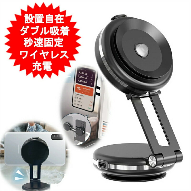 ■スマホホルダー 真空スマホスタンド 電動真空吸着機能 折り畳み式 ダブル吸盤 超強吸着力 スマホホルダー 車載スマホホルダー 安定性抜群 車スタンド 片手操作 携帯ホルダー 取り付け簡単 卓上スタンド 繰り返す使用可能 タブレット対応