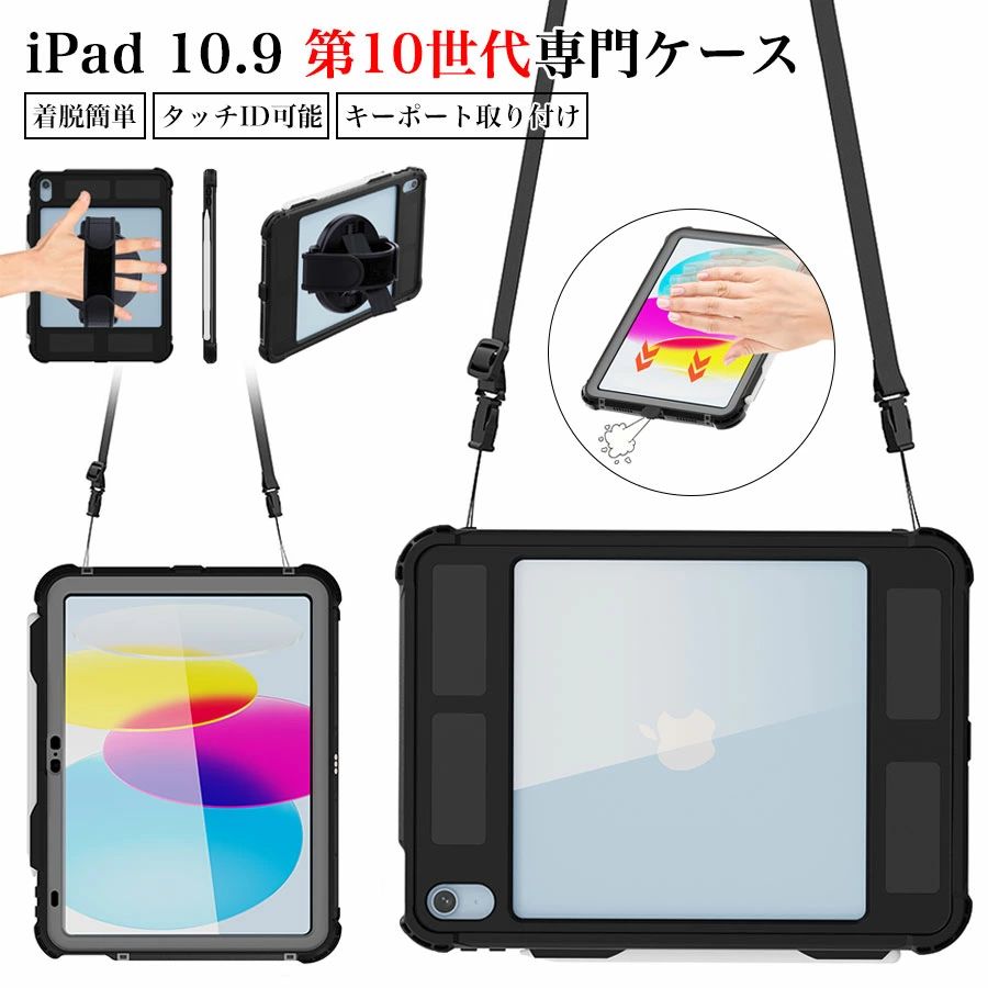 ■iPad 10.9 第10世代 ケース 着脱簡単 Touch ID キーボード取付け可能 防塵 防水 耐衝撃 防雪 調節可能なバンドベルト IP68 カバー ペン収納 スタンド 耐衝撃 柔らかい 送料無料 ギフト対応 プレゼント アイパッド 業務用 法人 アウトドア 落下防止 送料無料
