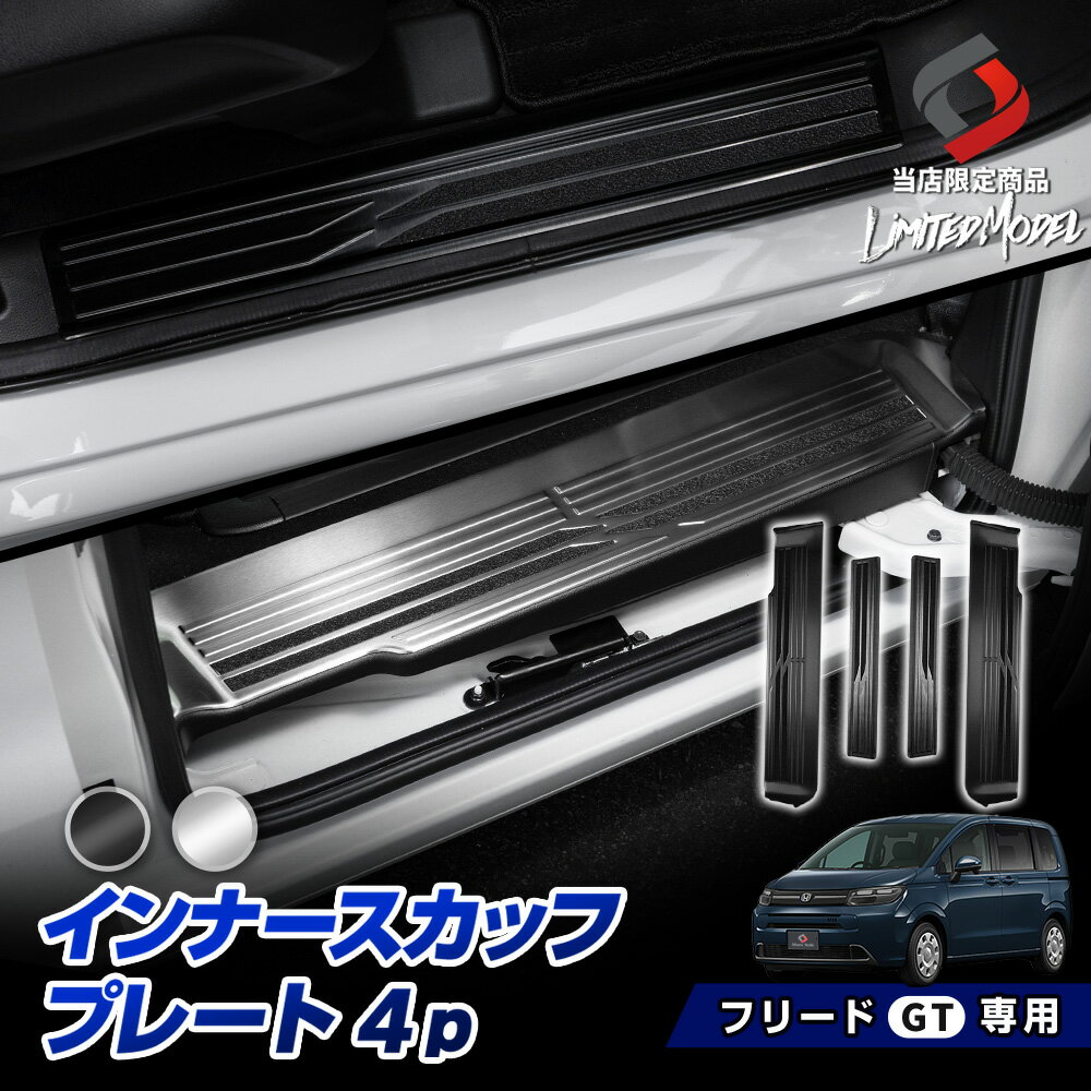 ■新型 フリード GT インナースカッフプレート 4p (当社オリジナル商品) カスタム シルバー ブラック ステン 乗り降りの 傷防止 汚れ防止 キズ隠し 内装 オプション 簡単取付 ドレスアップ パーツ GT1 GT2 GT3 GT4 GT5 GT6 GT7 GT8 ホンダ HONDA