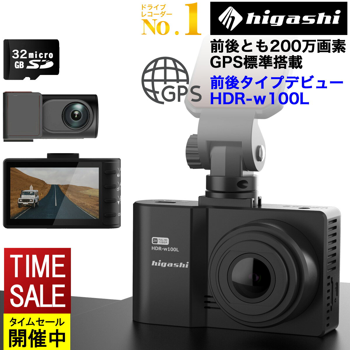 ■\スーパーSALE限定 3,000円クーポン 好評予約販売中/11日迄【入門機に最適】 ドライブレコーダー 前後2カメラ 前後 200万画素 前後カメラ GPS搭載 フルHD高画質 ノイズ対策済 ドラレコ あおり運転抑止 送料無料 1年保証 LED信号機対応 人気 簡単取付 型番HDR-w100L