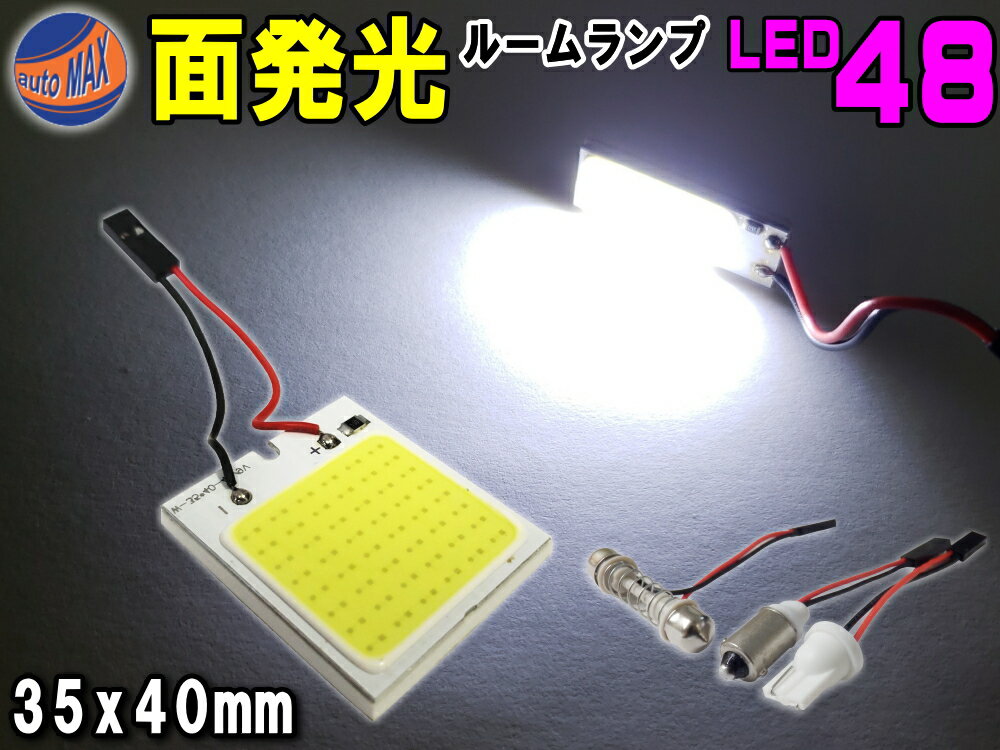 ■COB 48発LED 【ポイント10倍】 汎用 面発光ルームランプ 15mmx25mm 取付ソケットキット付属 取り付け簡単 T10 T10x31mm〜40mm BA9s ホワイト白 アダプター付 面光源 パネル型 室内灯 純正 交換 室内ライト 車内灯 球 SMD 両面テープ付
