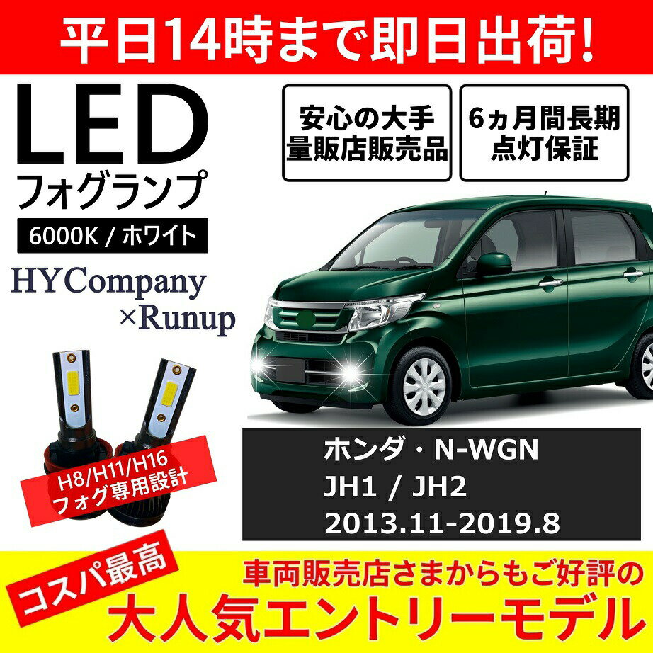 ■ホンダ N-WGN JH1 JH2 LEDフォグランプ H16 6000K ホワイト 車検対応 2本セット オールインワン コンパクト 12V COB フォグランプ 保証付き