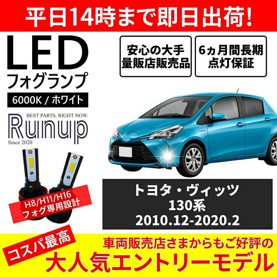 ■トヨタ ヴィッツ 130系 KSP130 NSP130 NSP135 NCP130 NCP131 NHP130 LEDフォグランプ H11 H16 6000K ホワイト 車検対応 2本セット オールインワン コンパクト 12V COB フォグランプ 保証付き
