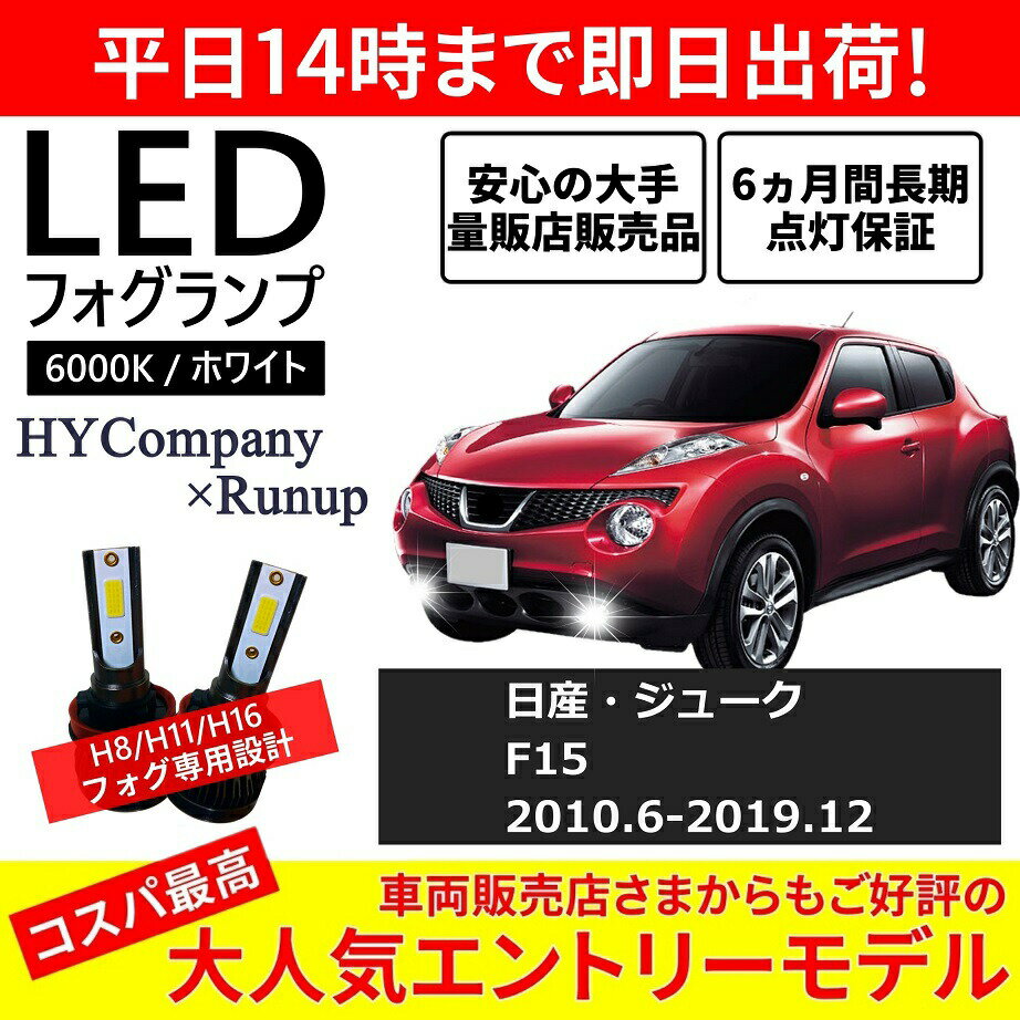 ■日産 ジューク F15 前期 後期 LEDフォグランプ H8 H11 6000K ホワイト 車検対応 2本セット オールインワン コンパクト 12V COB フォグランプ 保証付き