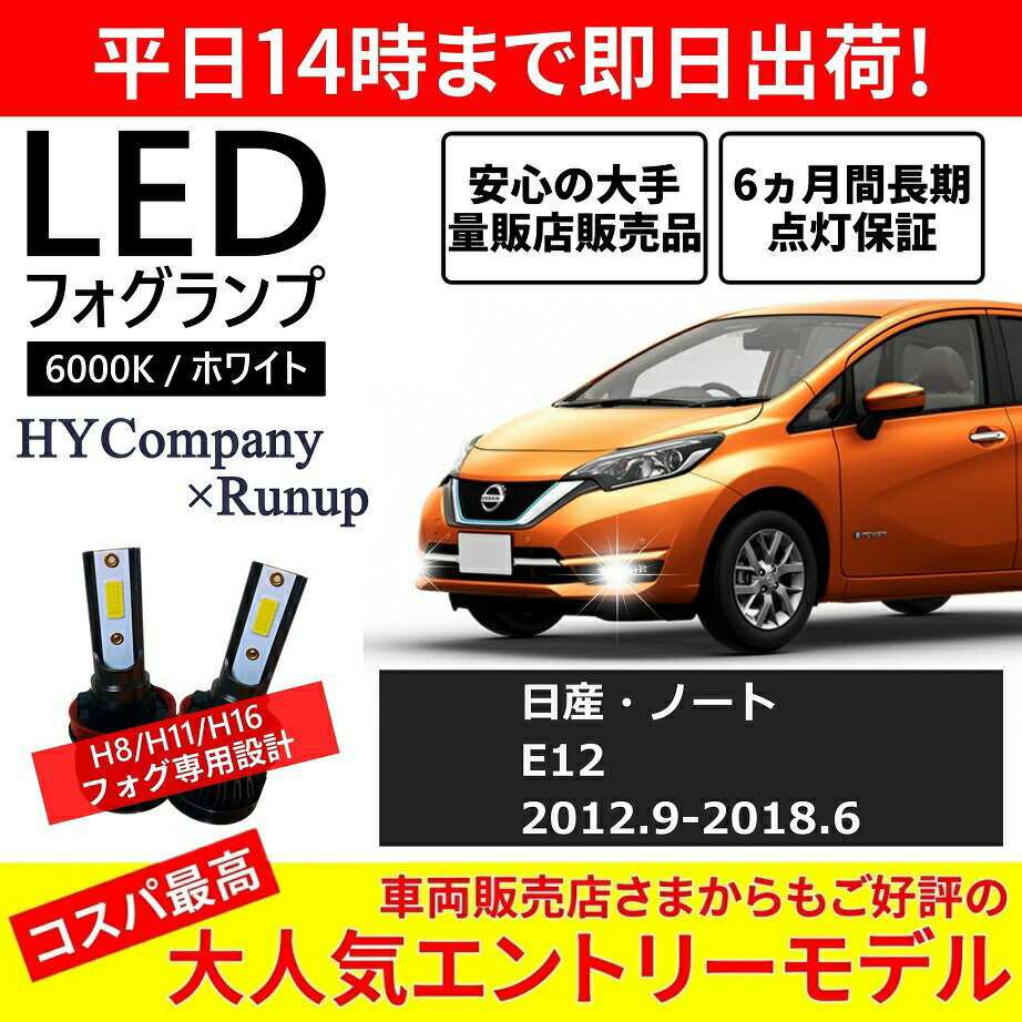 ■日産 ノート E12 LEDフォグランプ H8 H11 6000K ホワイト 車検対応 2本セット オールインワン コンパクト 12V COB フォグランプ 保証付き