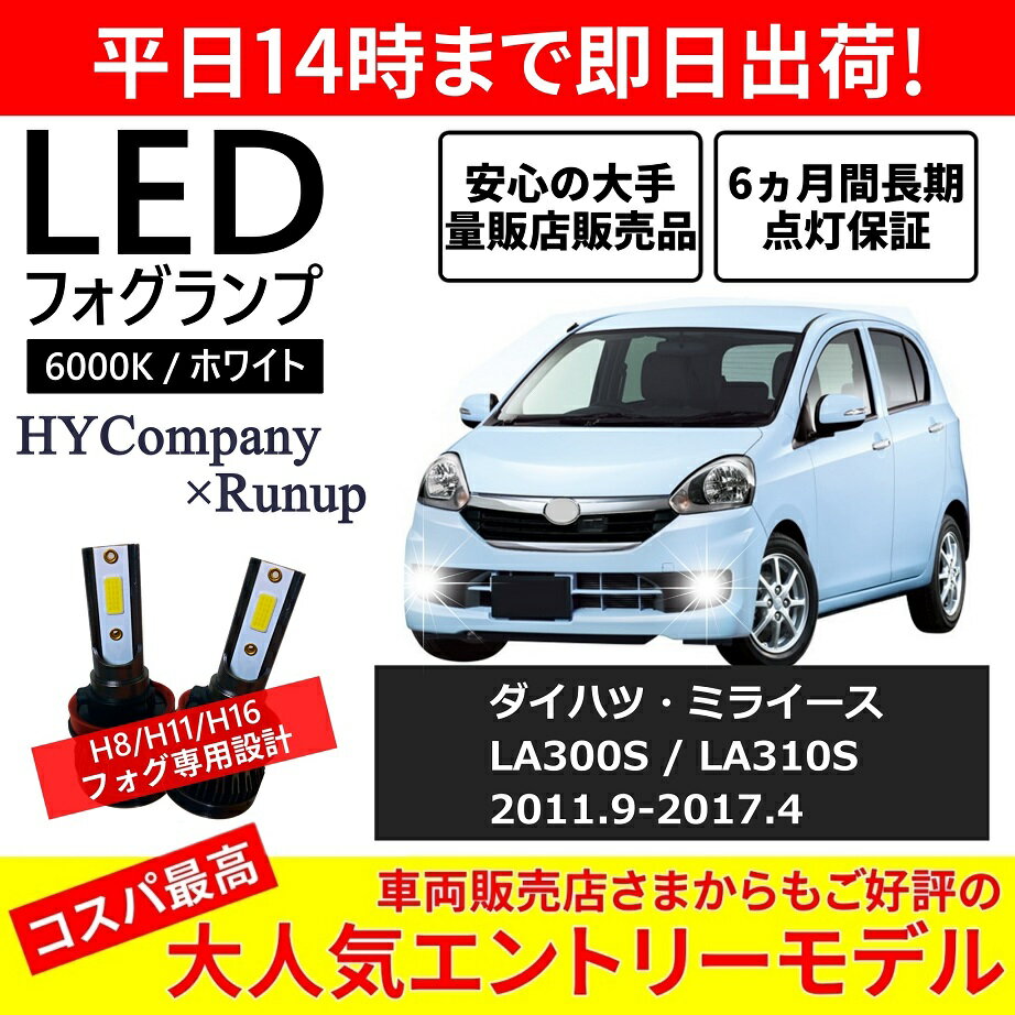 ■ダイハツ ミライース LA300S LA310S LEDフォグランプ H8 6000K ホワイト 車検対応 2本セット オールインワン コンパクト 12V COB フォグランプ 保証付き
