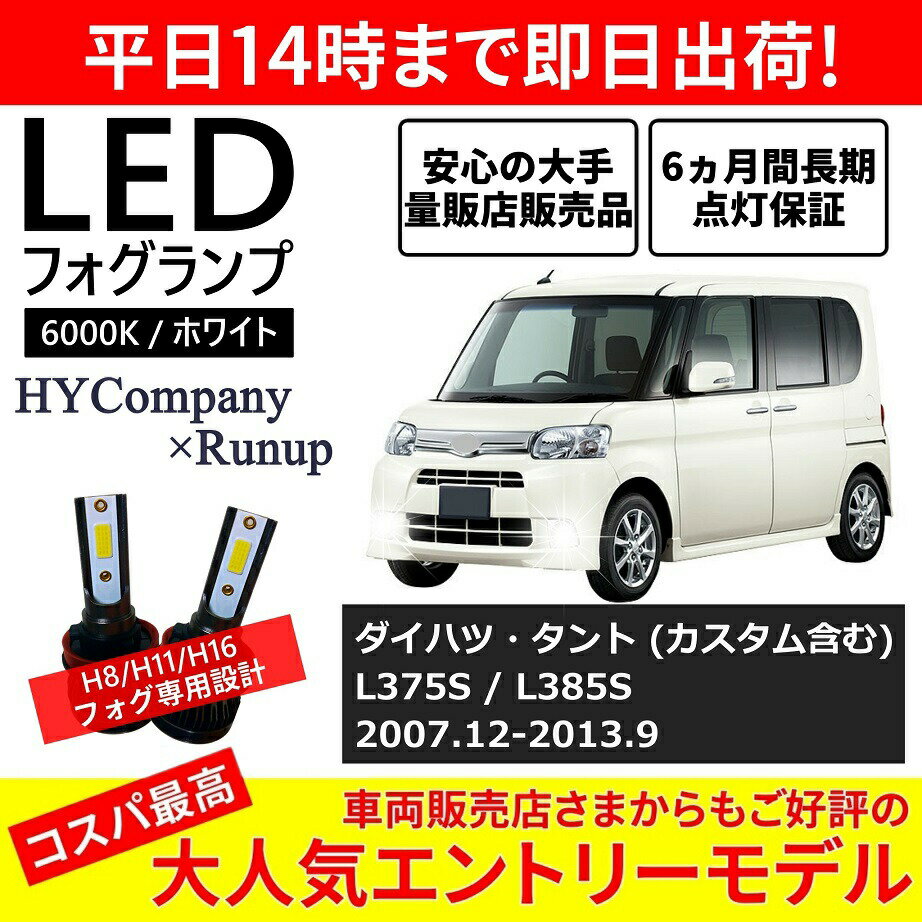 ■ダイハツ タント カスタム対応 L375S L385S LEDフォグランプ H8 6000K ホワイト 車検対応 2本セット オールインワン コンパクト 12V COB フォグランプ 保証付き