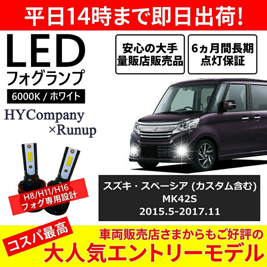 ■スズキ スペーシア カスタム対応 MK42S LEDフォグランプ H8 H16 6000K ホワイト 車検対応 2本セット オールインワン コンパクト 12V COB フォグランプ 保証付き