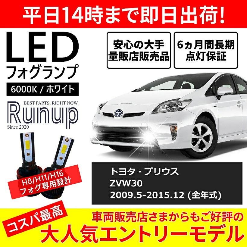 ■トヨタ プリウス ZVW30 30系 前期 後期 LEDフォグランプ H11 H16 6000K ホワイト 車検対応 2本セット オールインワン コンパクト 12V COB フォグランプ 保証付き