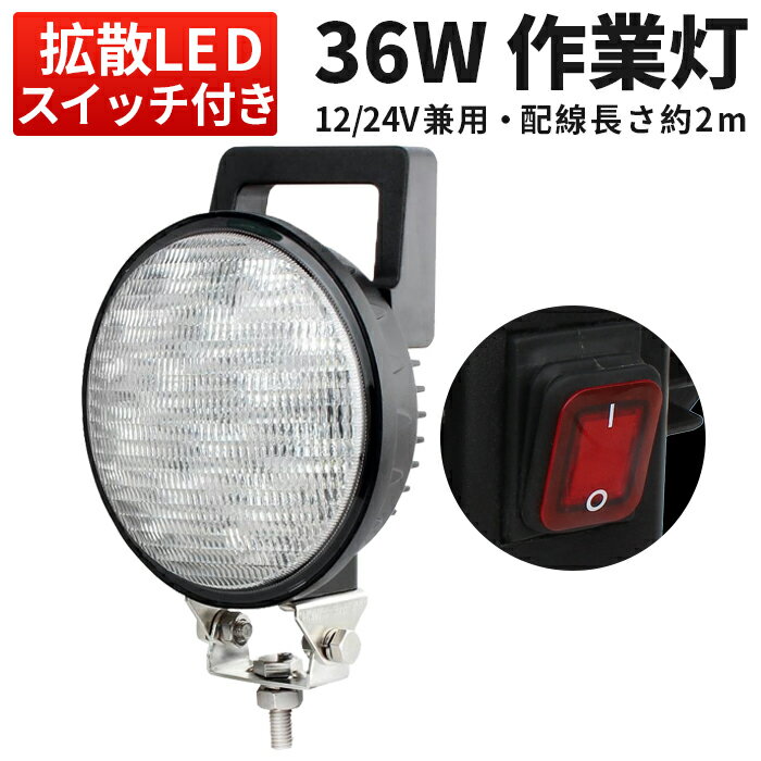 ■LED作業灯 36W ON/OFFスイッチ付【単品】 12V/24V兼用 高輝度2520LM 防水IP67 配線2m ワークライト 軽トラ トラック 船舶 建設機械 夜間作業
