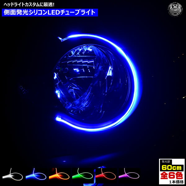 ■側面発光 シリコン チューブ ライト 60cm ホワイト ブルー オレンジ グリーン レッド ピンク から選択可 1本価格 ヘッドライト カスタムに 取付 簡単 カット可能 両端配線 ファイバー テープ テープライト 薄型 ウィンカー アイライン デイライトに【エムトラ】