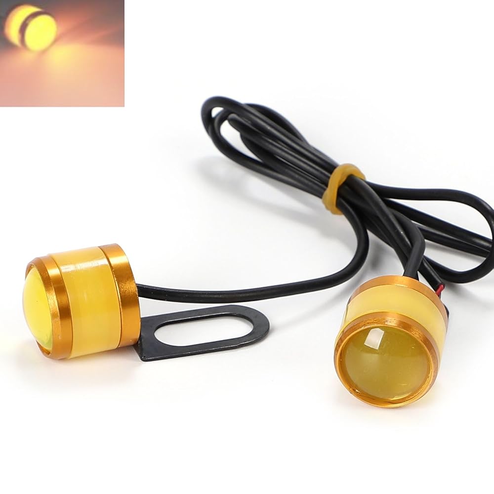 ■LED 常時 ライト コンパクト バイク 自動車用 汎用 明るい 取付簡単 2個セット イエロー 常時オン
