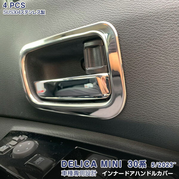 ■デリカミニ 30系 2023年5月〜 ドアベゼル インナードアハンドルカバー インナードアノブガーニッシュ インテリアパネル ドアハンドルカバー メッキモール 304ステンレス(サテンシルバー仕上げ) アクセサリー 内装 4pcs 6453