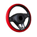 ■取付簡単 ハンドルカバー ステアリングカバー レザー レッド 36〜39cmに対応 円形型 快適な通気性 滑り防止 衝撃吸収 エブリイ ジムニー ワゴンR など