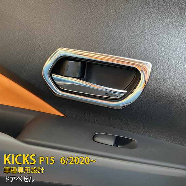 ■【大決算セール★半額特価】 大人気!日産 新型 キックス KICKS e-POWER P15型 2020年6月〜 ドアベゼル ドアパネル ドアハンドル 周り ガーニッシュ プロテクター ステンレス製 鏡面 メッキ カスタム パーツ インテリア パネル アクセサリー 4P 5021
