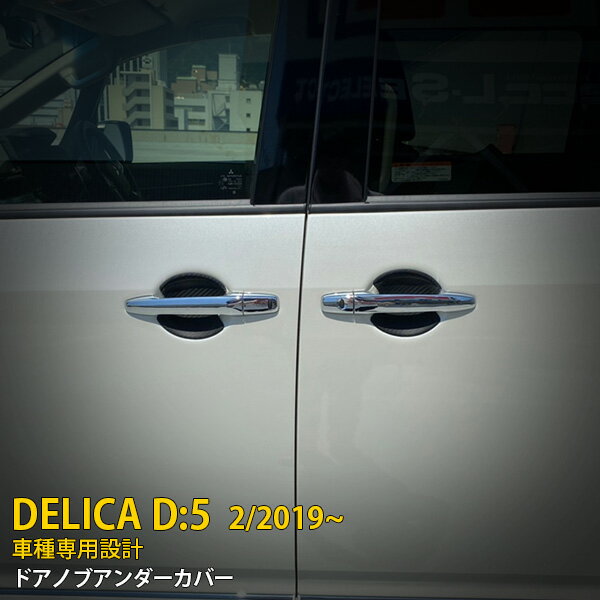 ■【スーパーSALE 20%OFF】 三菱 デリカ D:5 2019年2月〜 専用 ドアノブアンダーカバー ドアハンドルアンダーカバー プロテクター ラバー製 ひっかき傷防止 カーボン調 カスタム パーツ アクセサリー ドレスアップ DELICA D:5 外装 4P 5333