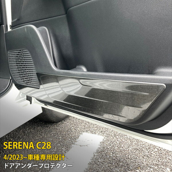 ■【大決算セール★30%OFF】 送料無料 日産 新型 セレナ C28 2023年4月〜 インナー ドアアンダープロテクター ドア キックガード ドアパネル 傷付き防止 黒 ステンレス製 ヘアライン仕上げ インテリアパネル アクセサリー ドレスアップ カスタム パーツ SERENA 内装 4P 6279