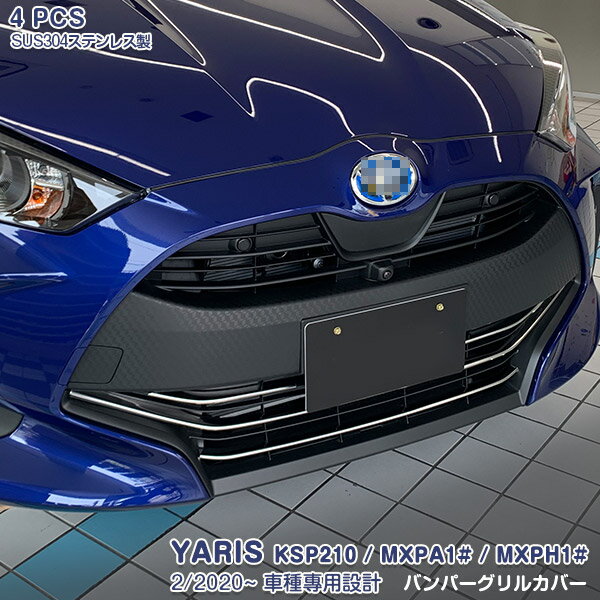 ■【大決算セール30】ヤリス KSP210 MXPA1# MXPH1# 2020年2月〜2024年1月 バンパーグリルカバー メッキモール ステンレス製(鏡面仕上げ) ドレスアップ 外装 カスタムパーツ アクセサリー キズ防止 4PCS 4844