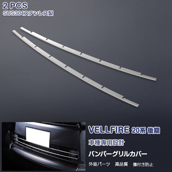 ■【スーパーセール20%OFF】ヴェルファイア 20系 後期 2011年11月〜2015年1月 24V・24X・35V・HBDV・HBDX フロントバンパーグリルカバー メッキモール ステンレス 鏡面仕上げ ドレスアップ カスタム パーツ エアロ 外装 アクセサリー VELLFIRE 2P EX269