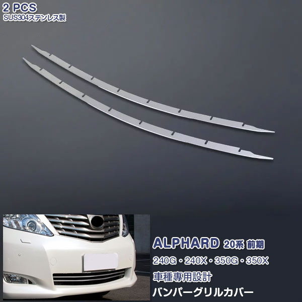 ■【スーパーセール10%OFF】トヨタ アルファード 20系 前期 2008年5月〜2011年10月 フロントバンパーグリルカバー ガーニッシュ グリルトリム メッキモール ステンレス(鏡面仕上げ) ドレスアップ 外装 装飾 傷予防 保護 アクセサリー カスタムパーツ 2PCS EX152