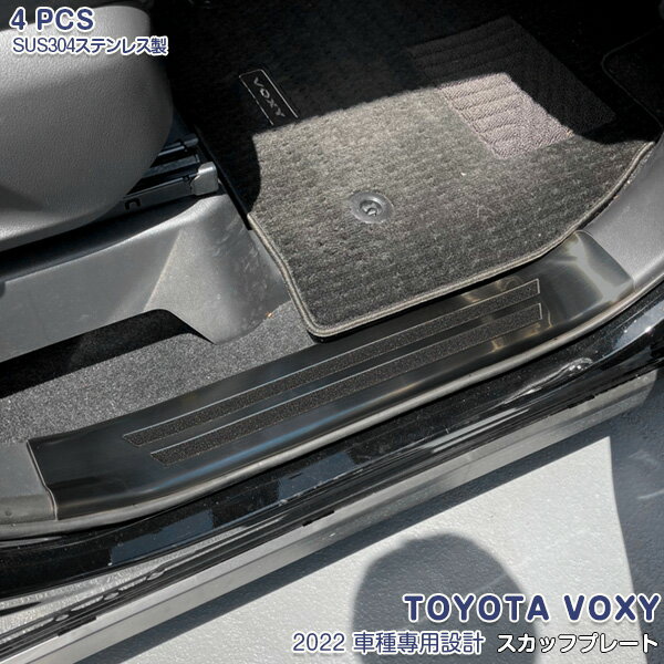 ■【大決算セール30】ヴォクシー ノア 90系 2022年 スカッフプレート ガーニッシュ サイドステップ ガードトリム ステッププロテクター ブラック ステンレス ヘアライン仕上げ VOXY NOAH 4P 5640 カスタム パーツ アクセサリー エアロ