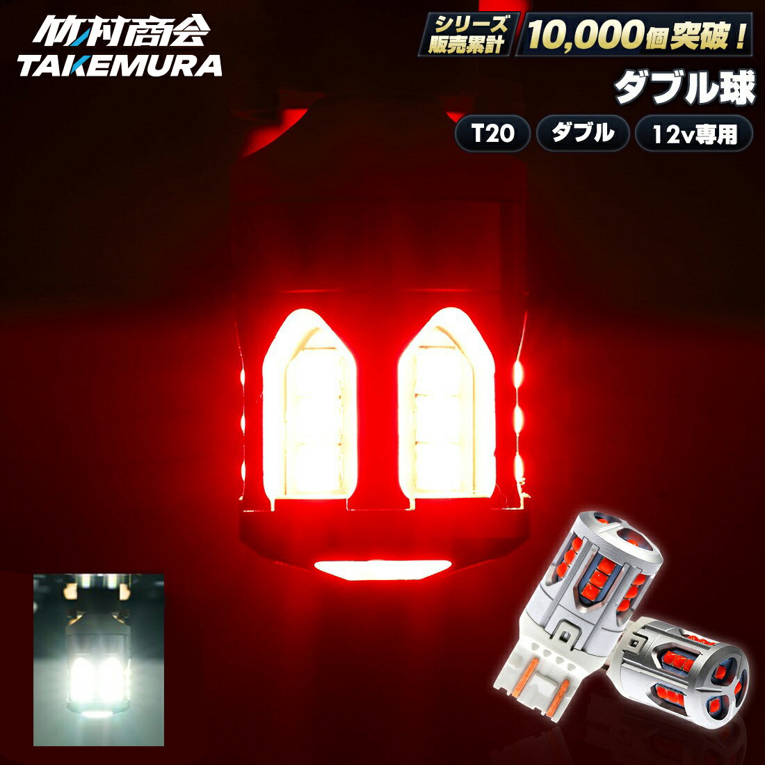 ■T20 ダブル LED 12V専用 レッド ブレーキランプ テールランプ ストップランプ ブレーキ球 車検対応 簡単取付 高輝度 視認性向上 耐久性抜群 放熱設計 軽自動車 普通車 旧車 バイク 竹村商会 ハイエース ノア ヴォクシー N-BOX セレナ ムーブ デリカ プリウス