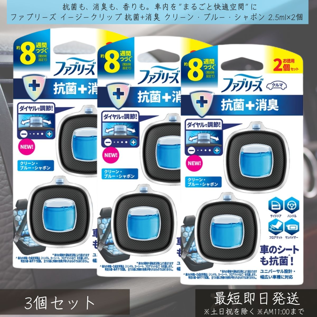 ■P&G 【ファブリーズ】 イージークリップ 抗菌+消臭 クリーン・ブルー・シャボン 2.5ml×2個 3個セット | febreze 消臭芳香剤 車用 カー用品 車内消臭 芳香剤 消臭剤 クリップ式 簡単取付 快適空間 消臭剤 エアコン取付 ユニバーサル設計 ダイヤル調整 約8週間持続