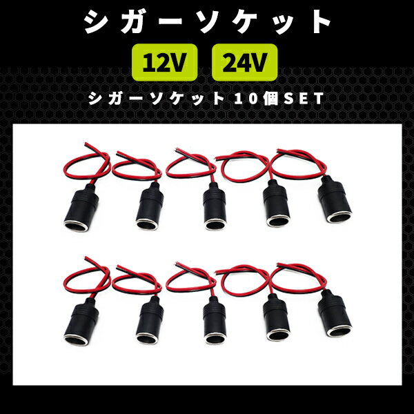 ドラレコの設置やスマホの充電などにも!12V / 24V 対応 シガーソケット! 12V / 24V 対応 シガーソケット。汎用品なのでシガーソケットがついていない車への取り付けが可能! 10本のSET売りで販売しております。 自動車の既存のシガーソケットではなく、オーディオコードなどから電源を取り、シガーソケット対応のアクセサリ用品などを接続することができます。 コードの長さは約31cmございま...