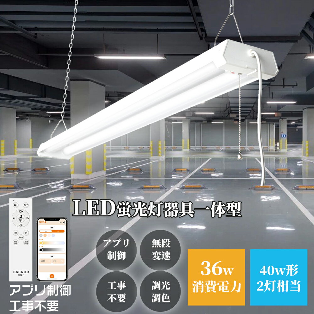 ■LED蛍光灯 器具一体型 40W形 高輝度 2灯相当 ベースライト 無段階調色 消費電力36W 7200lm 配線工事不要 ACプラグ付 プルスイッチ付 チェーン吊下式 ベースライト 吊り下げ 40w2灯 蛍光灯器具セット ledベース照明 40w型 蛍光灯led 器具一体型 棚下灯 led照明器具 4台連結