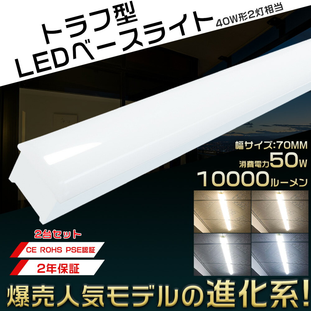 ■2台セット LEDベースライト 40W型 2灯相当 トラフ型 50W 10000lm 125cm 色選択 省エネ 高輝度 LED蛍光灯 器具一体型 一体型照明 天井直付型 直管蛍光灯 薄型 明るい LED照明器具 ちらつきなし 騒音なし 防震防虫 シーリングライト キッチンライト 天井照明【送料無料】