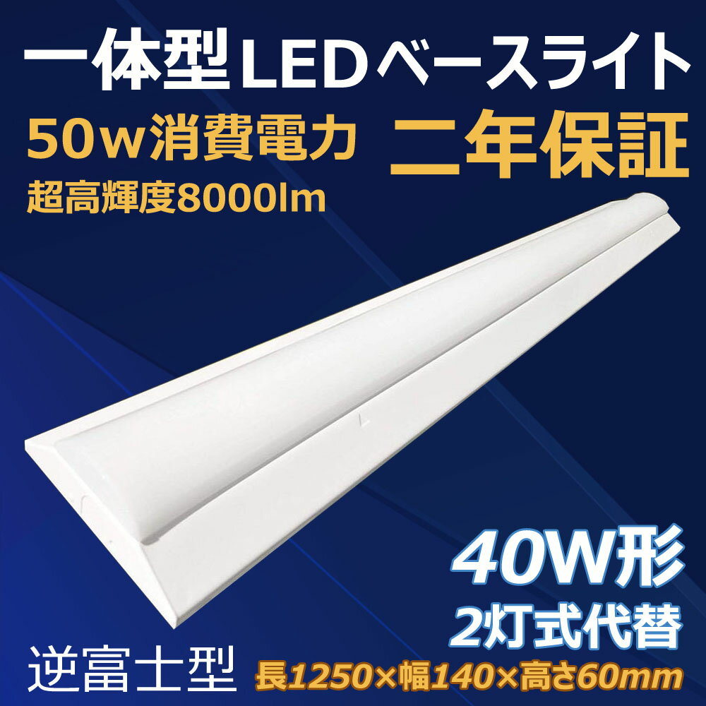 ■LEDベースライト 逆富士型 40W型 2灯相当 消費電力50W 高輝度10000lm LED蛍光灯 薄型 器具一体型 一体型照明 天井直付型 直管蛍光灯 40W形 逆富士型蛍光灯 ベースライト シーリングライト キッチンライト 防震 防虫 取付簡単 学校 スーパー 倉庫 オフィス PSE認証