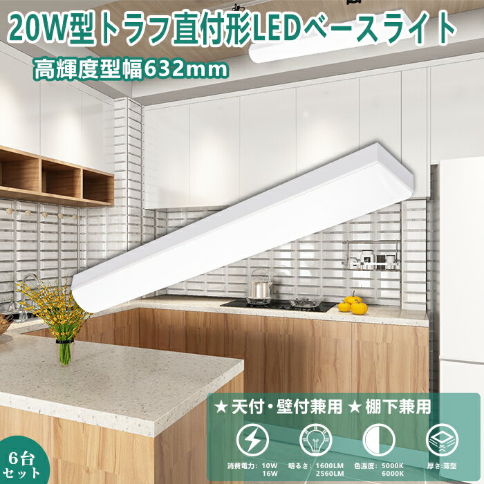 ■【6台】ledベースライト 20W型 2灯相当 逆富士 LED蛍光灯 器具一体型 一体型照明 天井直付型 一体型LED 直管蛍光灯 薄型 取付簡単 LED照明器具 直付 led蛍光灯 632mm 省エネ ベースライト キッチンライト 防震 防虫 天井用 LED施設照明 天井LED一体型 即納 あす楽 送料無料
