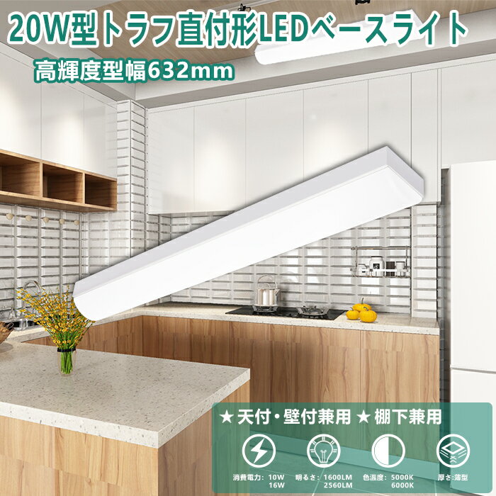 ■【送料無料】ledベースライト 20W型 2灯相当 逆富士 LED蛍光灯 器具一体型 一体型照明 天井直付型 一体型LED 直管蛍光灯 薄型 取付簡単 LED照明器具 直付 led蛍光灯 632mm 省エネ ベースライト キッチンライト 防震 防虫 天井用 LED施設照明 天井 ベース照明 即納 あす楽